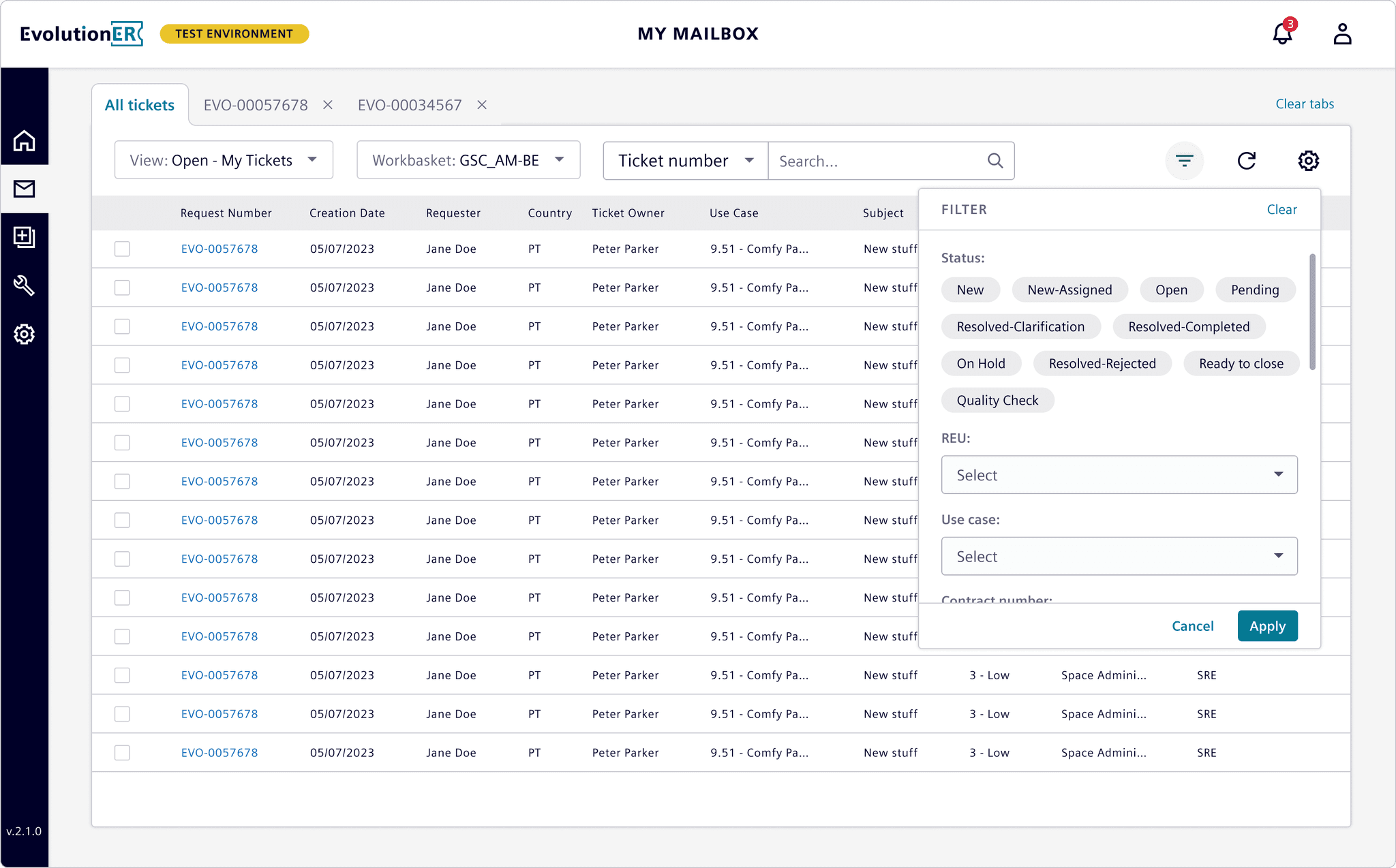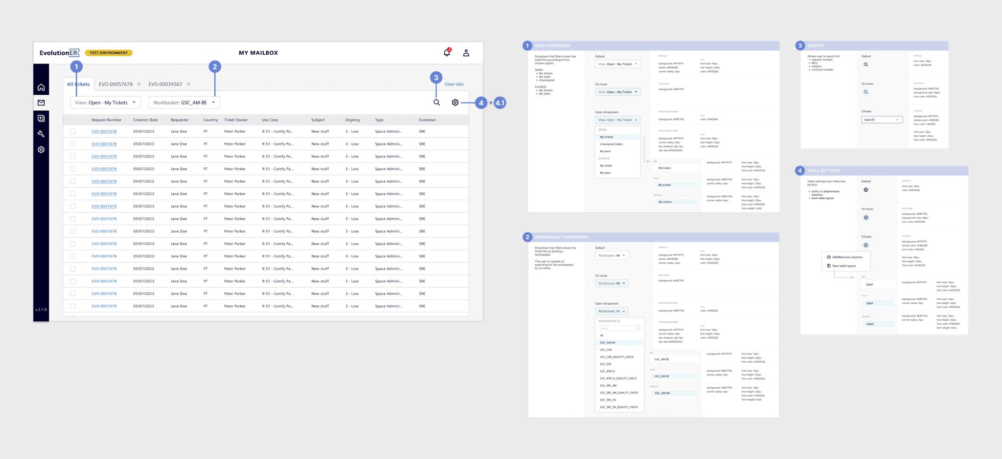 I added a dedicated filtering system to simplify searching for tickets, addressing a major pain point. Users could now filter and find tickets based on multiple criteria, with indicators showing how many filters were applied. Additionally, common actions were moved under a cog icon, keeping the interface clean. A new preview feature allowed users to view ticket details without navigating away, making it easier to manage multiple tickets at once.